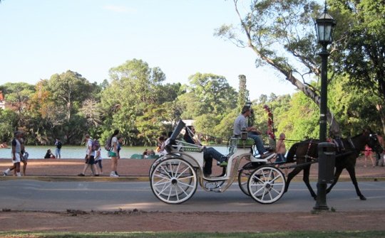 Parque Tres de Febrero, also known as the Bosques de Palermo (“Palermo Woods”), is big (see map below). Sometimes compared to Central Park in New York or vice-versa, it has a similar scope and flavor of activity. Suffice it to say it is a world-class park. Luckily for us we can walk a couple of blocks, cross Libertador and we are there. Not to get bogged down in the history of how the park came to be but this is a good story. In 1852 Juan Manuel de Rosas was overthrown. It sounds like he might not have been a very nice guy which makes taking his lands and making a public park seem like a reasonable thing to do. That event (the overthrow) took place on Februrary 3, 1852. So for a little in-your-face irony the park was named Parque Tres de Febrero (February 3 Park). Touché!