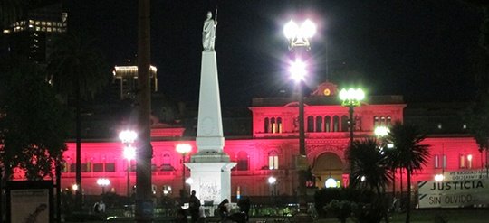 Even though we spent the first two weeks in BA living in an apartment a few blocks away and had passed through Plaza de Mayo (prounced Masho) several times, we had not toured the Presidential Palace. In a recent Huffington Post article Casa Rosada was among the top 13 palaces of the world. One night passing through the plaza we caught this stunning image which explains why it is called the Pink House.