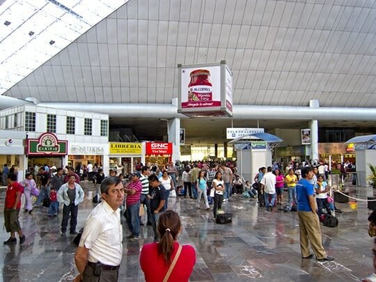 Research done and plans made, we purchased ETN luxury bus tickets online for April 15. That Sunday morning we took a short taxi ride (30 pesos/$2.50) to the San Miguel bus terminal for the 3.5-hour bus ride to Mexico City (DF).