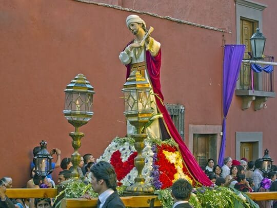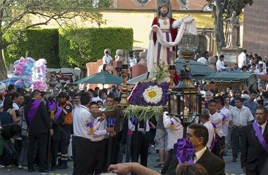 In 2010 we enjoyed a world famous celebration of Semana Santa in Granada, Spain. The crowds there were magnitudes larger, the pageantry enormously impressive and the scale and scope of the celebration breathtaking. Semana Santa in San Miguel is beautiful, impressive in its devotion, and has a solemn meaningful feeling created by the devout Catholics who migrate here. We are told Catholics from all over the country come to San Miguel for Semana Santa because this city preserves the historic traditions. Let’s take a look at those…