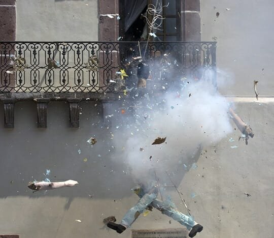 One after another, the sequence was the same: a firecracker to start the figure spinning a second to accent the coming of the third and its violent opening of the papier-mâché Judases, quickly followed by the crowd’s laughter and cheers of appreciation. I am not sure this is politically correct today, but the crowd loved the time-honored event.