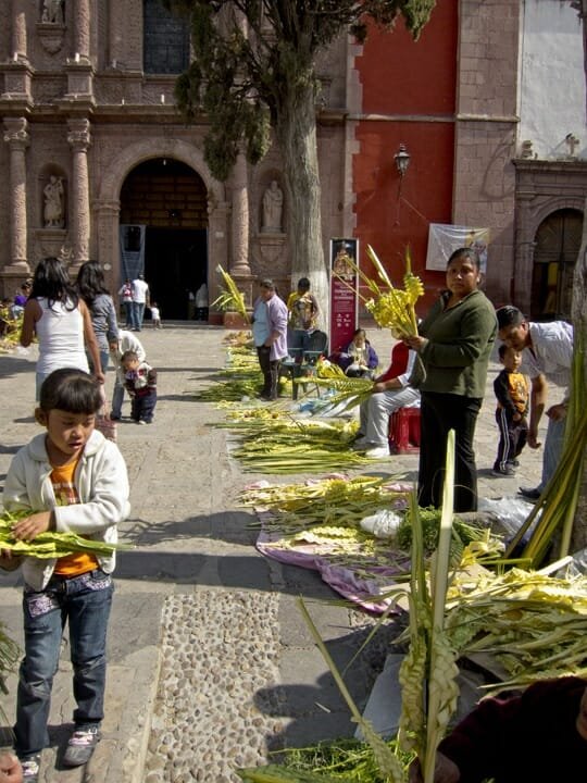 The story unfolds beginning with Palm Sunday, with two processions representing Christ’s entry into Jerusalem, where he is greeted by palm waving residents. Seemingly everyone in the city was waving palm fronds. It was the palm weaving that caught my eye…