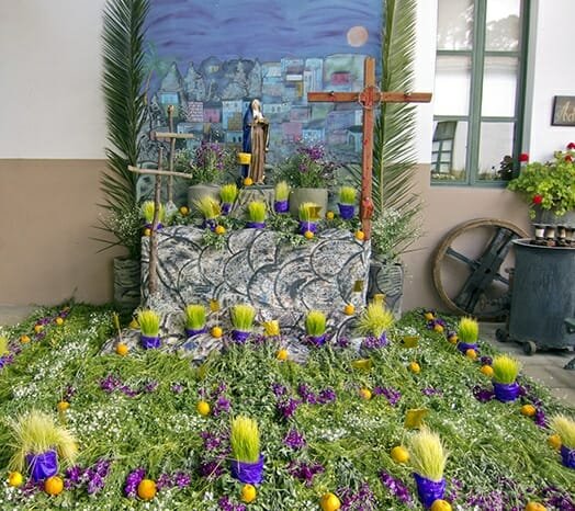 Here are a two altar displays using grasses, flowers and oranges for Our Lady of Sorrows celebration…