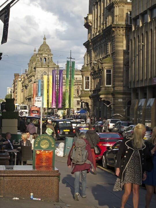 On George Street approaching George Square, the main square of the city where there is always plenty of activity.