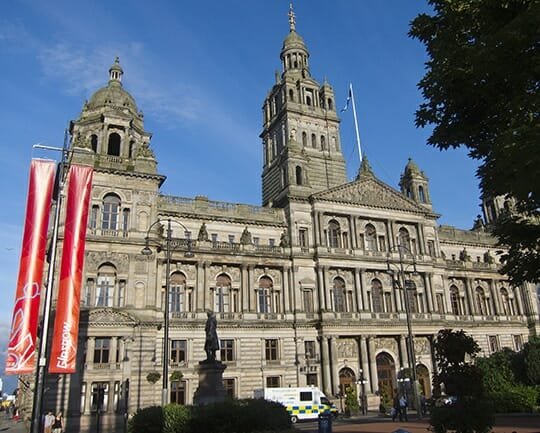 The Glasgow City Chambers, home of the city council dominate the square and were opened in 1888.