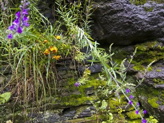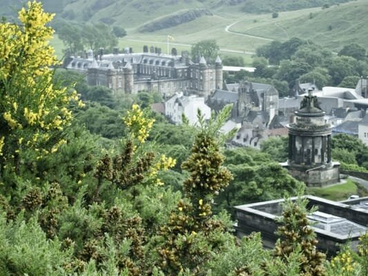 Near Calton Hill – the color of tiny flowers and the ever-present green of Scotland.
