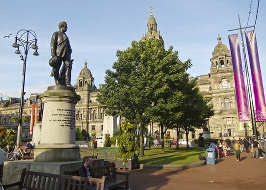 Glasgow, Scotland. This bus tour started in George Square. Glasgow is going to become a must-see city on every smart list. Well worth the time for slow travel.